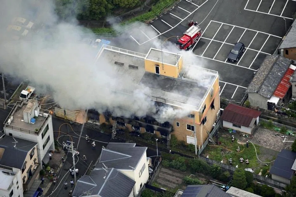 The fire department said it began receiving calls around 10.35am (1.35am GMT) about the fire at the studio belonging to Kyoto Animation. The blaze was still burning two hours later.