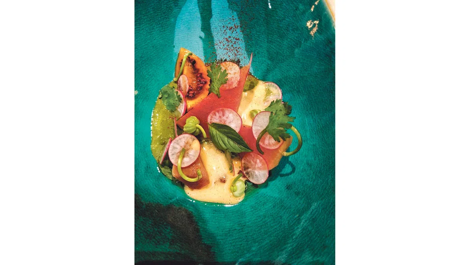 But Singapore's farmers are just a drop in the ocean compared to Relæ's own farm, which forms the heart of its cuisine. Every morning, chef Tam and his chefs design the day's menu based on what the harvest brings.