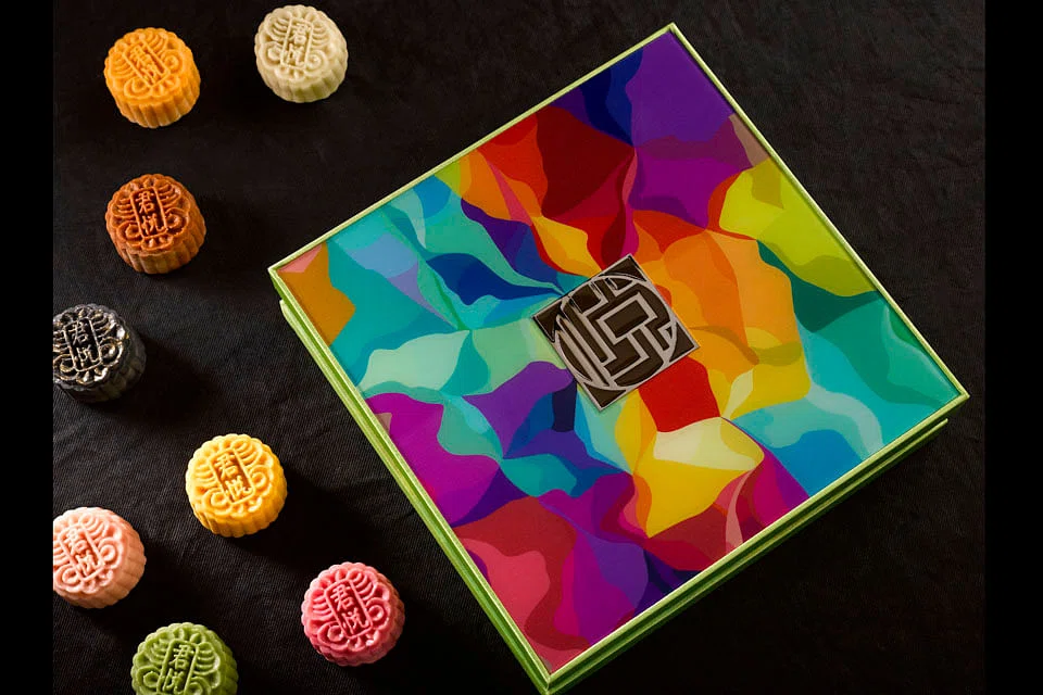The mooncakes are housed in a signature gift box made from acrylic, with a design that is just as intriguing. The splashes of vivid colour make for an arresting and beautiful picture and bring to mind a watercolour palette. Maybe we can judge things on appearances, just this once.