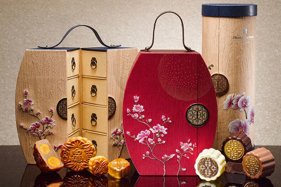 If you're going for eye-catching presentation, then there's no doubt that Shangri-La Hotel, Singapore's mooncakes are the way to go. This year, their mooncakes come in three different customised satin boxes, each with their own peach-blossom embroidery, and individual drawers for each mooncake.