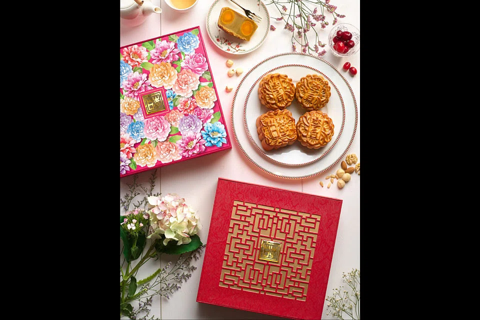 Master Chef Steven Ng of Shang Palace explains that the floral designs were inspired by the hotel's location "amidst 15 acres of garden and near the Botanical Gardens". He suggests that "the mooncake boxes can all be upcycled to be used as jewellery boxes post-Mid Autumn".