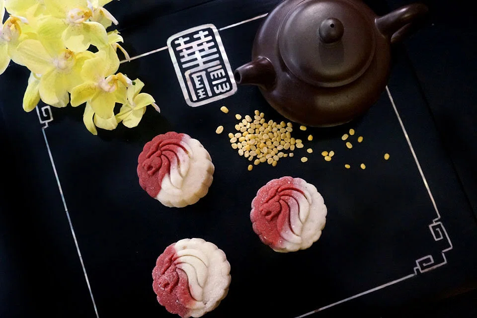 Tea takes centre stage at this year's Mid-Autumn Festival, with Regent Singapore's two new mini snowskin mooncakes, housed in a red and gold box with a Chinese tea pot embellishment and intricate black trimmings.