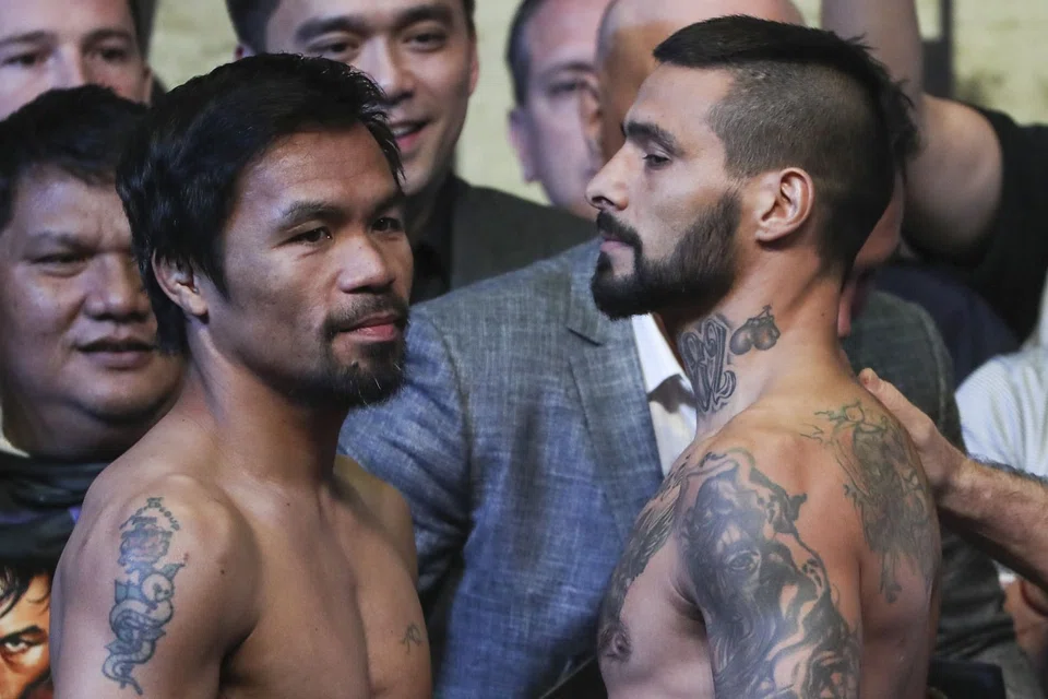 [KUALA LUMPUR] Filipino legend Manny Pacquiao weighed in Saturday comfortably under the 147-pound (67-kilogramme) limit for his bid to win back the welterweight world championship against WBA champion Lucas Matthysse of Argentina.