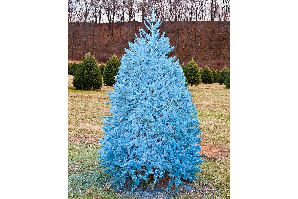 That work has been left to John Wyckoff, who upended centuries of holiday custom this fall when he began selling a vibrant array of painted Christmas trees at his family farm in the small rural town of Belvidere, New Jersey, just east of the Delaware River. Coming in pink, purple, white and two shades of blue, the colourful conifers are more than a little conspicuous amid a forest of pine-green - a vision less Dickens than Dr Seuss.
