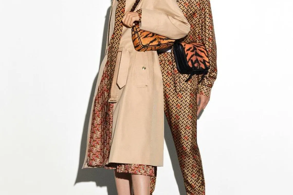 Not to be outdone, Burberry has redesigned its signature monogram in beige and orange, giving a fierce feline flavour to its jackets, shirts, dresses and knitwear (above). A tiger stripe print in an orange hue is also deployed on Burberry's signature Lola and Olympia bags, as well as on cashmere scarves, sneakers and on linings. The brand wants to underline the "tiger's strong and confident spirit" - and succeeds.