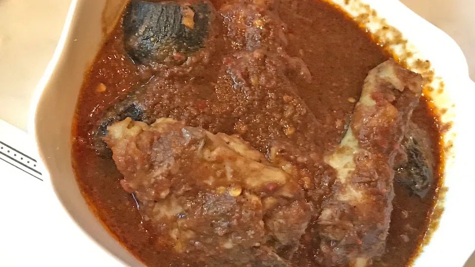 Although the chicken in the Buah Keluak Ayam (S$23) tastes more like a transit visitor than long-term resident in the mild, tangy gravy, we're happy that they use only drumstick and thigh meat, so there's no fiddling with tired-out bony breast bits. The buah keluak is cooked as it is, so it's pure bitter flesh that you scoop out, not a loving mix of meat and nut.