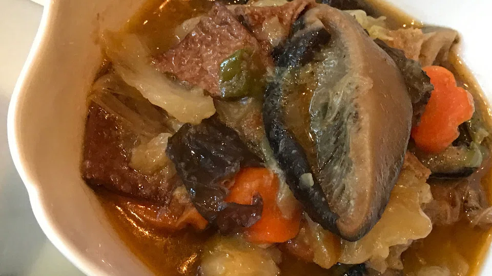 The Chap Chye (S$15) has been left to simmer too long - the cabbage leaves almost dissolve into our rice - but it is nice and homey, a mix of mushrooms, carrots and tofu skin braised in broth with just a light touch of taucheo or preserved soy beans.