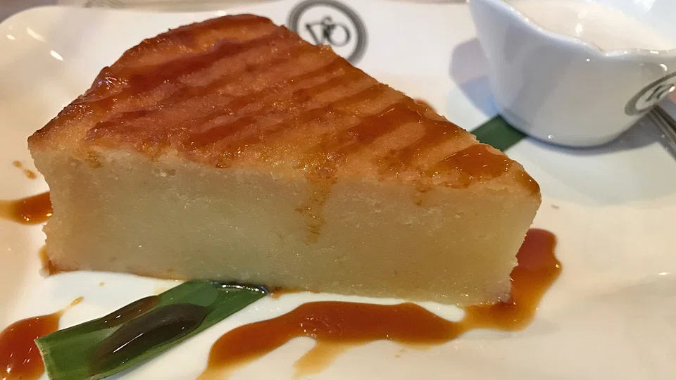 Kueh Beng Kah (S$10) is a steamed tapioca kueh that's usually served in more dainty portions, not in an ungainly, custardy slab that gives it a rather squeamish texture.