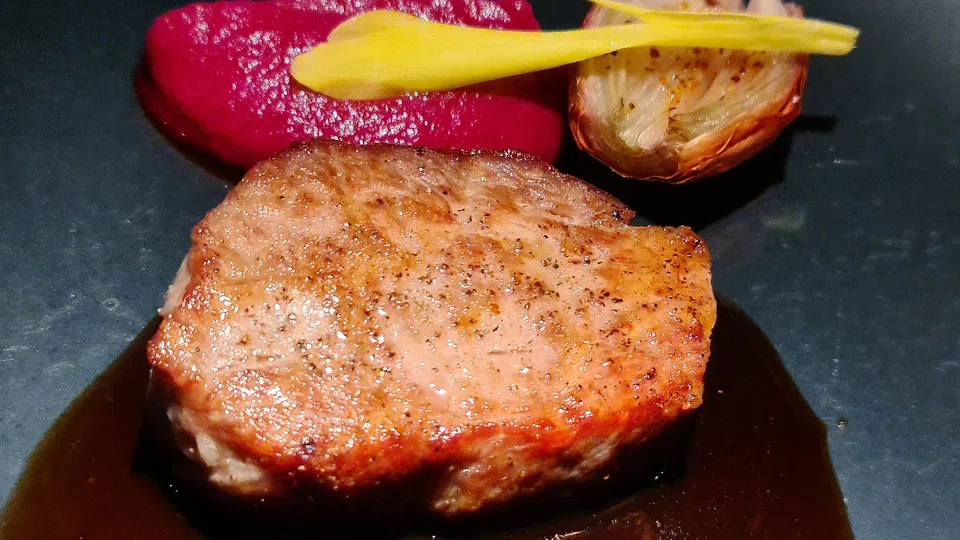 Compared to the seafood, the meat dishes are a downer. Wagyu striploin (S$16 supplement) has been cooked sous vide but ends up on the rubbery side, paired with a classic red wine sauce and beetroot puree on the side. We prefer the melting soft, gelatinous texture of beef tongue stewed in red wine, even if the tongue itself is surprisingly bland.