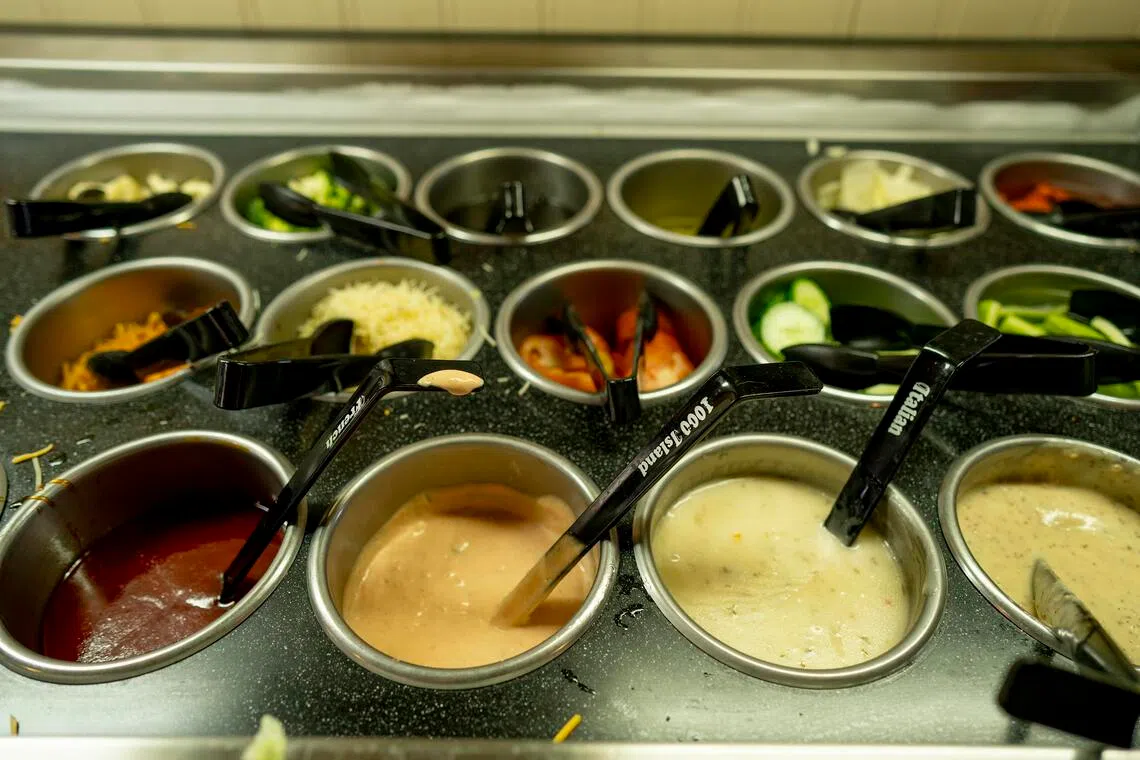Pizza Hut sells its franchisees elements like red booth seating, red-and-white-checked tablecloths and brand artwork, Sparks said. All the other accouterments, like the wire condiment caddies and battery-powered table candles, are provided by his company. “I’m a big salad bar guy. It’s going to have a salad bar,” Sparks said. “That’s how I remember it back in the day.”