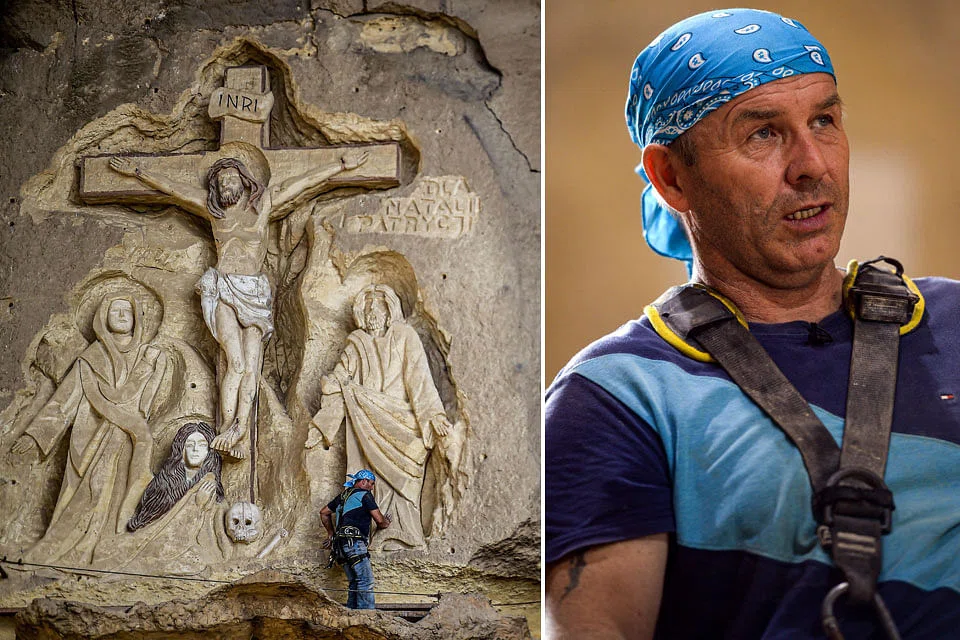 Self-taught artist has spent over two decades carving about 70 sculptures in rock-hewn monastery