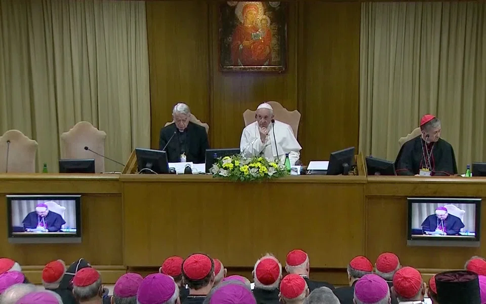 Speaking in the Vatican's Synod Hall, Pope Francis addressed the 190 church leaders, including the presidents of many of the world's bishops' conferences, men's and women's religious orders and powerful cardinals from his committee of top advisers.