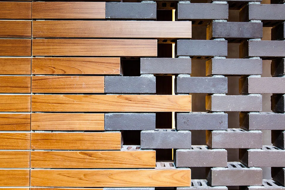 For example, vertical bamboo screens and creepers on the roof and along the perimeter of the house provide shade and privacy.