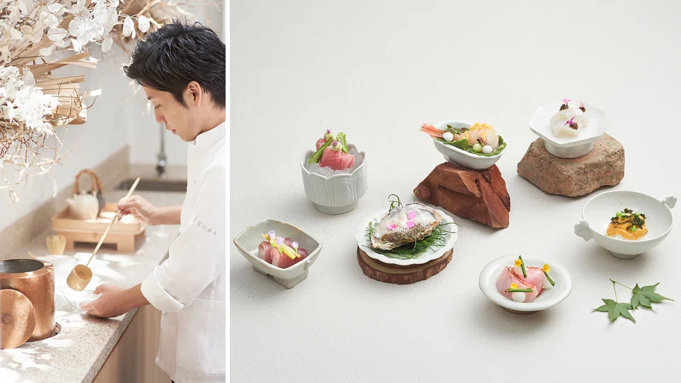 Esora is, of course, the handiwork of the Lo & Behold Group, and it is its first stab at high-end Japanese cuisine. Helming the restaurant - with help from some of Odette's bright young staff - is Shigeru Koizumi, whose resume includes stints at Nihonryori RyuGin in Tokyo and Odette itself. His style isn't remotely like Ryugin, which leans towards loud, intense flavours, but he does share some affinity with Odette for its lighter, more understated flavours and working style.