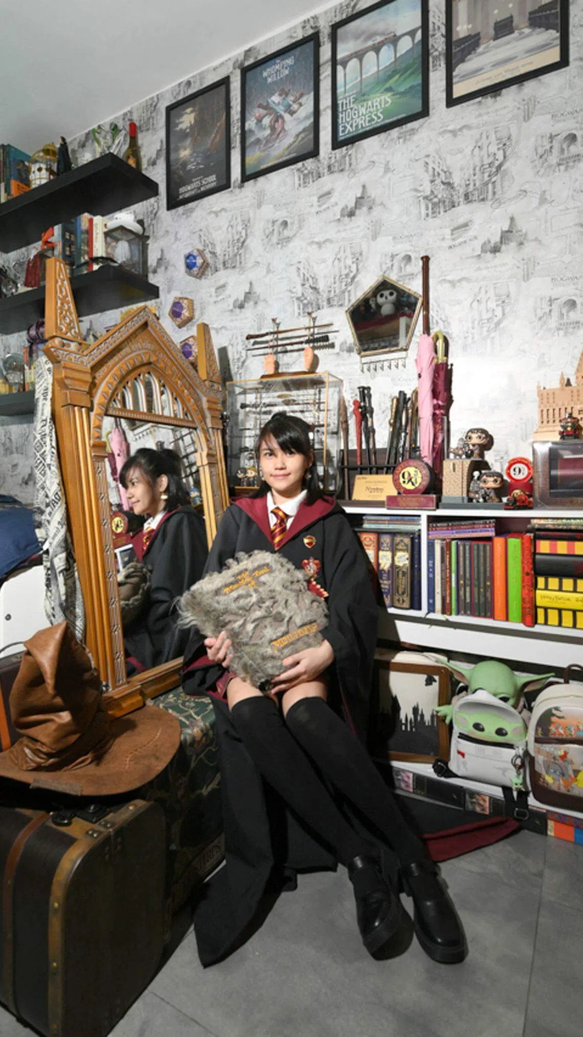 Standing at the foot of the bed is a replica of the Mirror of Erised, a magical mirror that reflects a person’s deepest desire. The mirror had cost Ma about US$400, with another few more hundreds spent shipping from the US. “I was so worried that it might get lost along the way, but thankfully, it arrived safely,” she says.