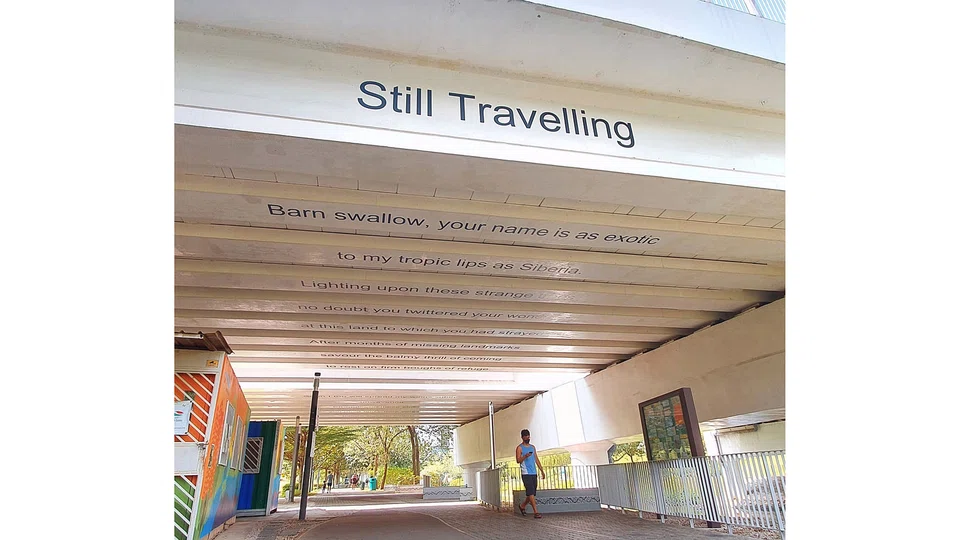 Under a bridge in Punggol Waterway Park, for instance, poet Aaron Lee has inscribed an original poem titled Still Travelling on the long beams holding up the bridge across the water. The poem alludes to our yearning to travel to find refuge and inspiration - a wanderlust that's difficult to quell in a time of widespread border restrictions.