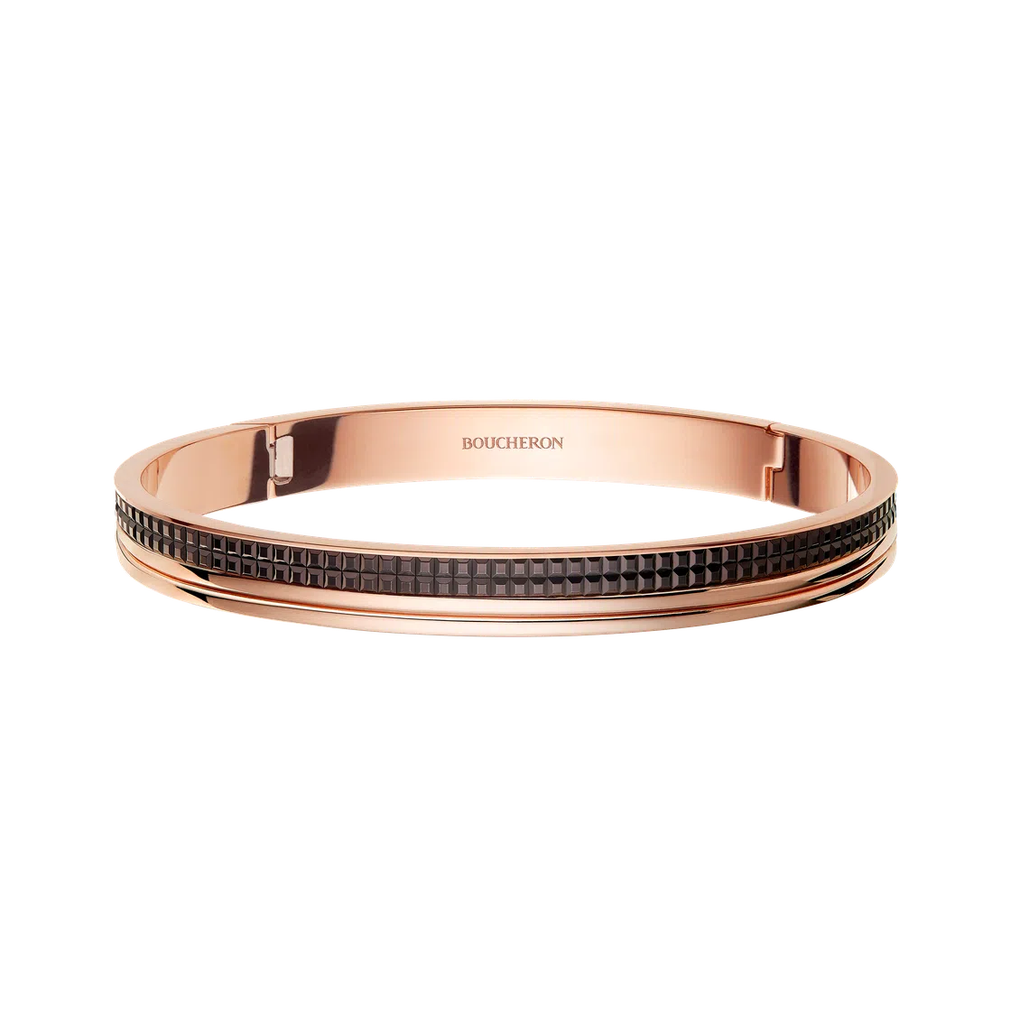 For something more graphic and contemporary, there’s the iconic Quatre Classique bracelet (S$14,750) in pink and yellow gold with brown PVD coating and the Quatre Radiant Edition hoop earrings (S$6,800) in yellow and white gold with diamonds.