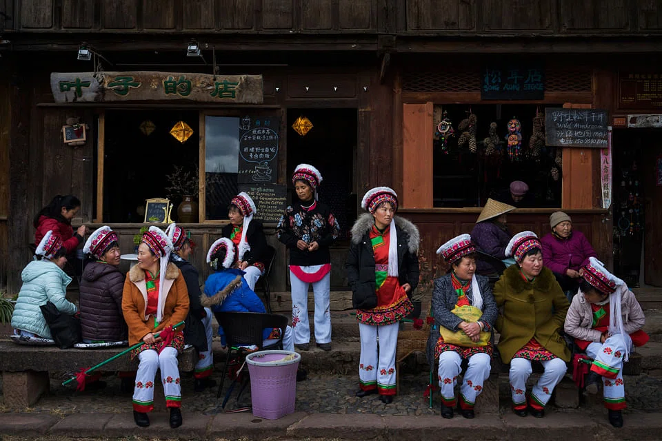 He Yuqing, 60, wore a blue tunic and apron, common among older ethnic Bai women of this verdant valley in the Himalayan foothills. In the plaza outside, afternoon sunlight fell across cobblestones on which horse caravans once trod.