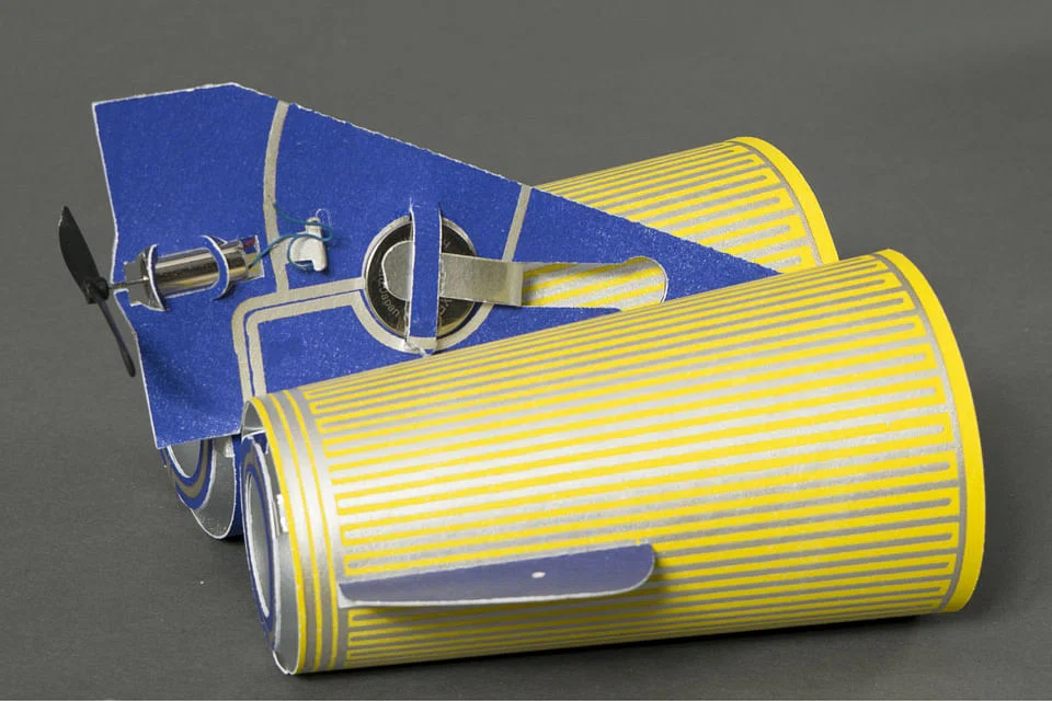 Each toy demonstrates one or several electronic principles. All the toys are working prototypes, and they are printed on paper with silver, carbon, cadmium and thermo-chromic ink.