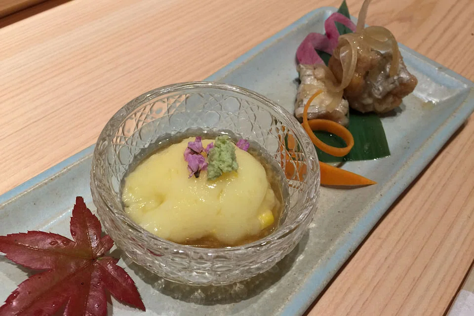 You'll need a handroll or two to feel adequately satiated with the S$70 Tsubaki set, which nonetheless offers an attractive variety of appetiser and eight pieces of sushi that includes a little bowl of rice covered with ikura. Otherwise the S$120 and S$170 set fills you up just nicely, with the difference being that the S$170 option includes extras such as two gingko nuts with a starter of corn tofu and a mouth-puckering vinegared tile fish, grilled fish and a few lobes of uni in your bowl of ikura.