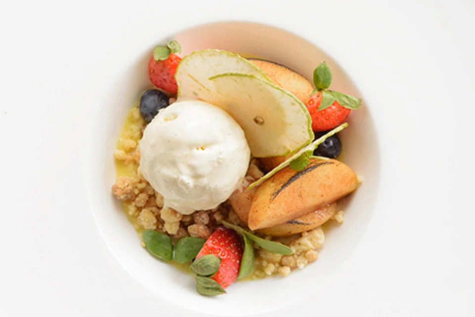Grass-fed ribeye is more rare than our requested medium rare. And very lean without the marbling that makes ribeye relatively tender, which does make us wonder if we got a different cut instead. The meat is on the chewy side, but is like all grass-fed meat - clean but with less flavour than their grain-fed counterparts. On the side is the same arrangement of vegetables as the sea bass, albeit with pumpkin puree replacing the potato mash.