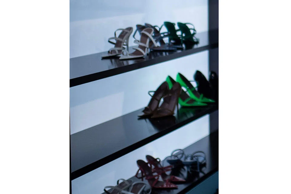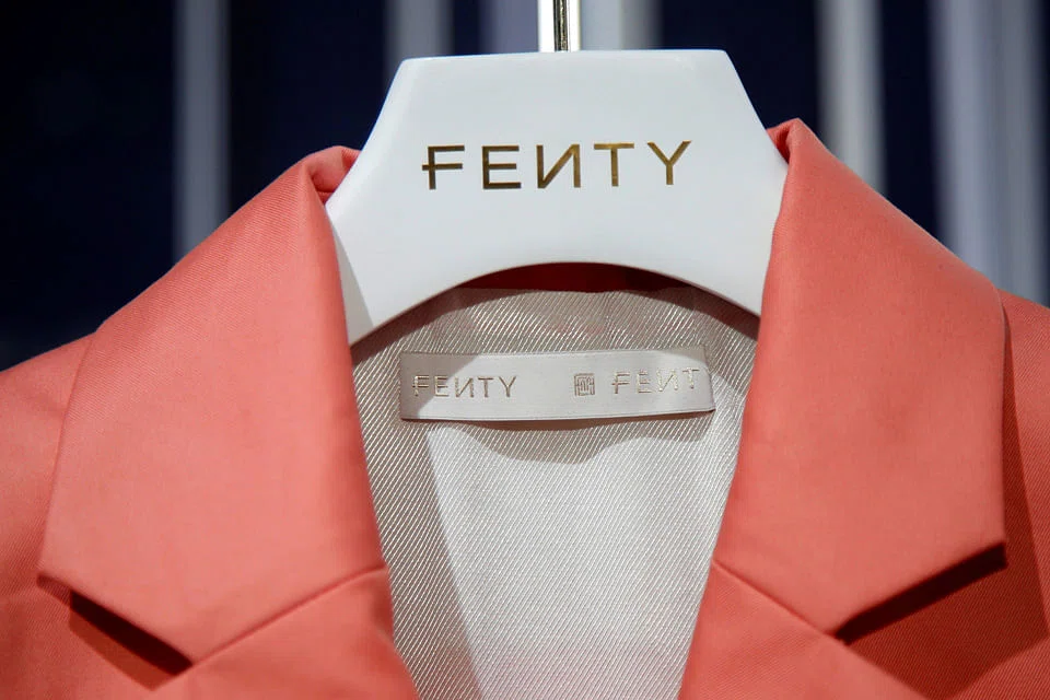After nearly two years of work behind the scenes, Fenty's debut offer was a mix of ready-to-wear pieces like slouchy denim overshirts, leather shoes, and costume jewelry with crystal cuffs and giant white-lacquer hoops. Fenty sunglasses, produced by LVMH's joint venture with Italian eyewear-maker Marcolin, were stacked high on columns in the middle of the room. Some of the suits had matching pants, while others, such as the one sported by Rihanna, are meant to be worn as dresses. The prices range from 200 euros (S$308) for a T-shirt to 1,100 euros for a parka. They are quite a few notches below the usual fare at such LVMH brands as Louis Vuitton, where cocktail dresses often retail above 2,500 euros.