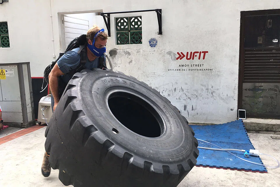 In Singapore, Brooks Entwistle works out outdoors, at high noon, and wouldn't have it any other way as he trains for his extreme mountain pursuits