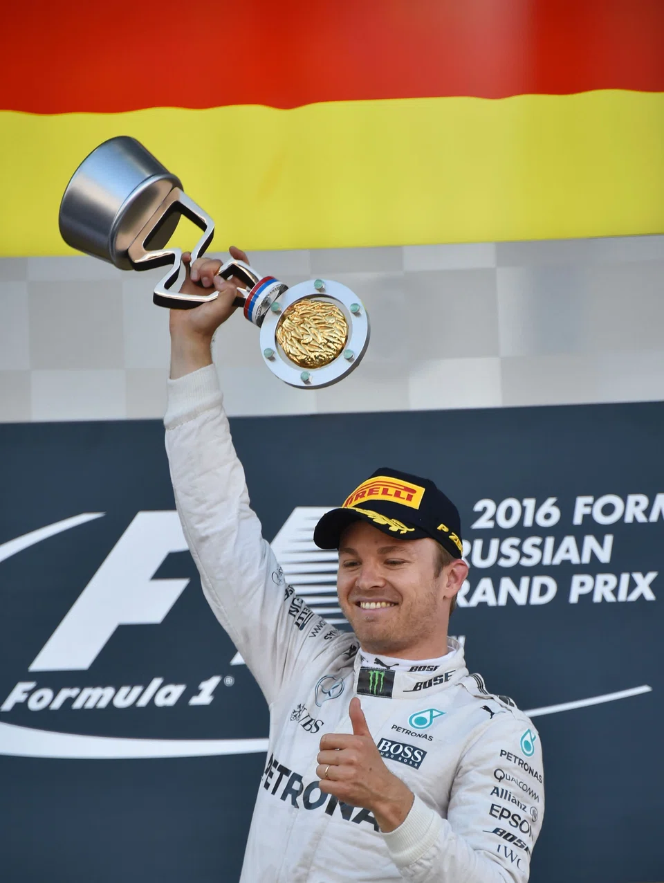 In a race that started with chaos, and Ferrari's Sebastian Vettel being shunted into the wall by Red Bull's Russian Daniil Kvyat, Rosberg had an untroubled afternoon from pole to chequered flag for his 18th career win.
