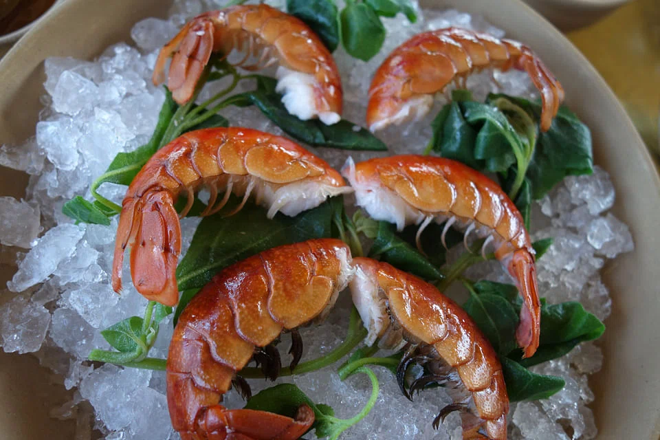 Still, take away the insects and other odd twists and you have a saner Noma which offers innovation with "normal" ingredients. Snacks include delicate crispbread made from pigs trotters and wattle seed like a pork crackling keropok; sunflower and geranium flatbread topped with raw and pickled courgette slices and an unusual lettuce leaf topped with uni smothered in dark vinegar powder.