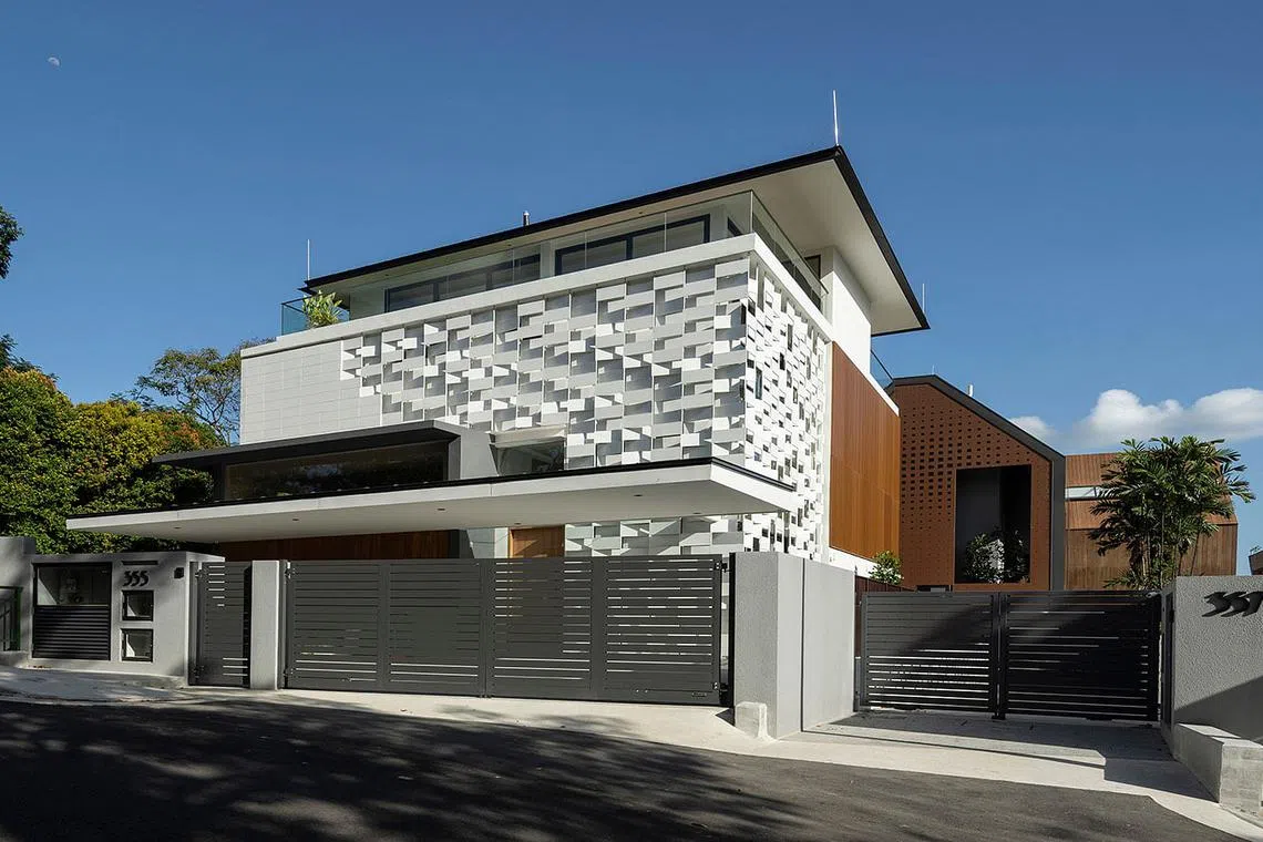 To make the home suited for tropical living, Mr Kee created two different facades. There are vertical fins on one side and, on the other, aluminium louvres are carefully angled to allow just enough light to fill the interiors. On the outside, the facade resembles a pixelated screen.