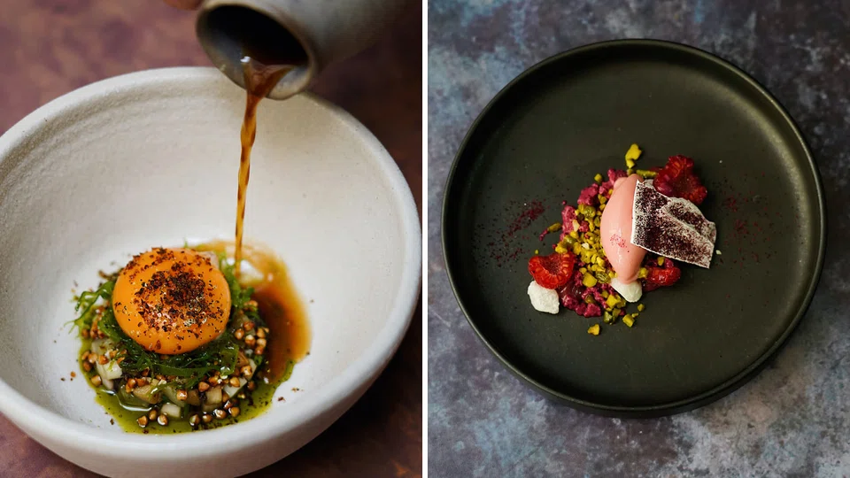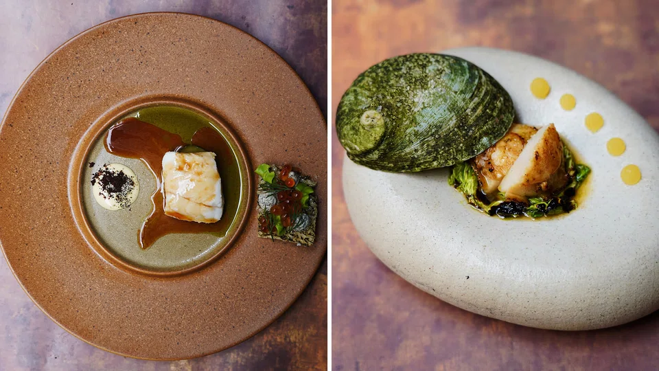 An abalone is next, lightly grilled and hiding under its shell. The tender flesh gets a boost from a vegemite-like glaze made from fermented sourdough trimmings, in a full-bodied charcuterie broth enriched with the abalone liver. It's like a multiplex of flavour, and some savoy cabbage is on hand to soak up what you can't spoon up.