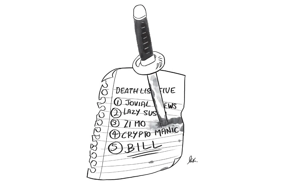 Next on her list was Crypto Manic Street Preacher, a crazed millennial in high-end sneakers and Bitcoin sweaters of offensive colours. An undisputed cliche of the times, Crypto Manic was always in his student dorm, skipping class to mine for digital coins, or running through the dorm proclaiming "decentralisation!" before passing out in front of his room from too much alcohol.