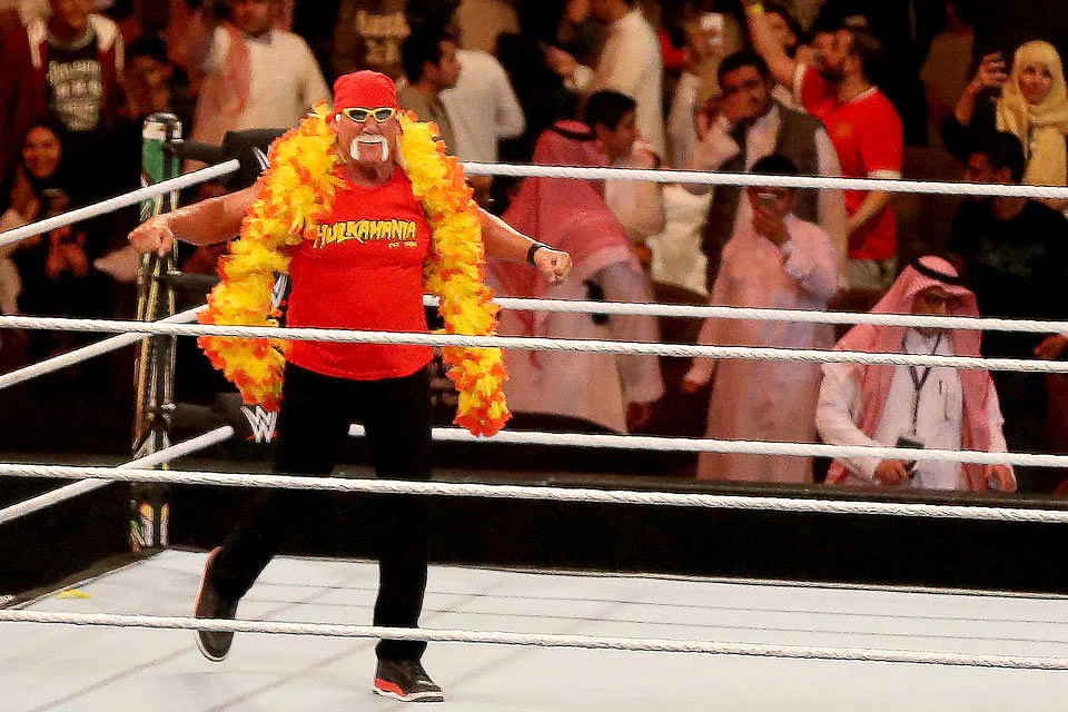 With thumping rock music and a dazzling fireworks display, the legendary Hulk Hogan, the host for the evening, swaggered into the ring wearing bright yellow sunglasses and a red bandana.