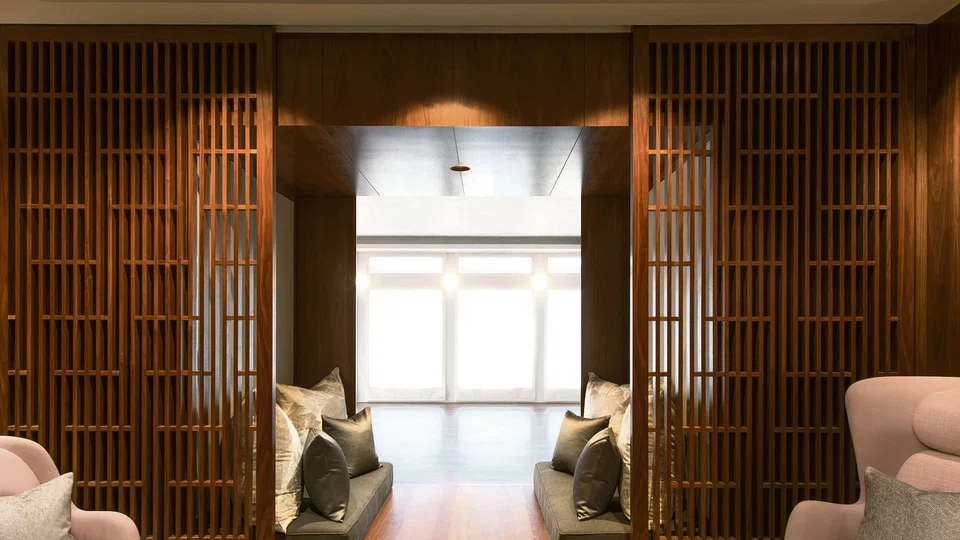 Designed by architect Bobby Cheng of Brewin Design Office, the understated interior is a reflection of yoga's five koshas - the layers of our being - representing the deliberate inward journey into one's self.