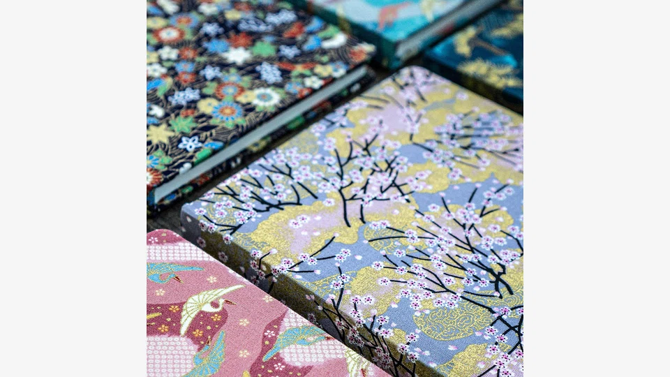 Each limited edition notebook is clothed in Japanese fabric and comes in lined and plain versions.