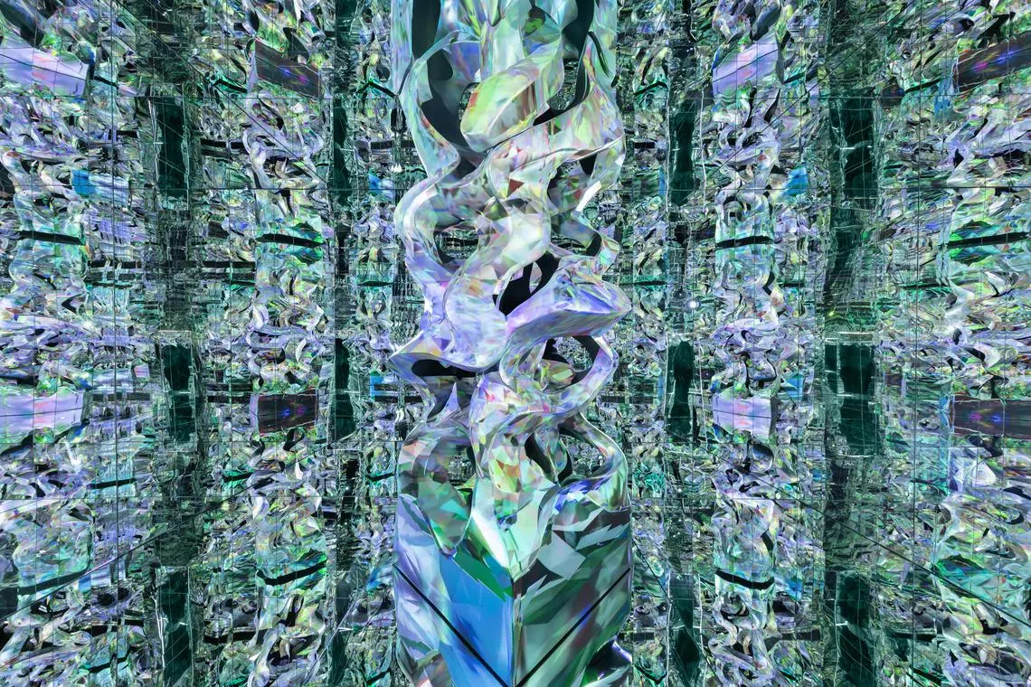 The highlight of the exhibition, however, is Infinito: AI Data Sculpture by Refik Anadol, an acclaimed Turkish media artist, director and pioneer in the aesthetics of data and machine intelligence. In his work, machine-learning algorithms trained on a dataset on snakes are used to ignite a giant sculpture in a 360-degree mirrored room. The result is a kaleidoscopic, visual feast that conveys the metamorphic and endless nature of Bvlgari’s Serpenti icon.