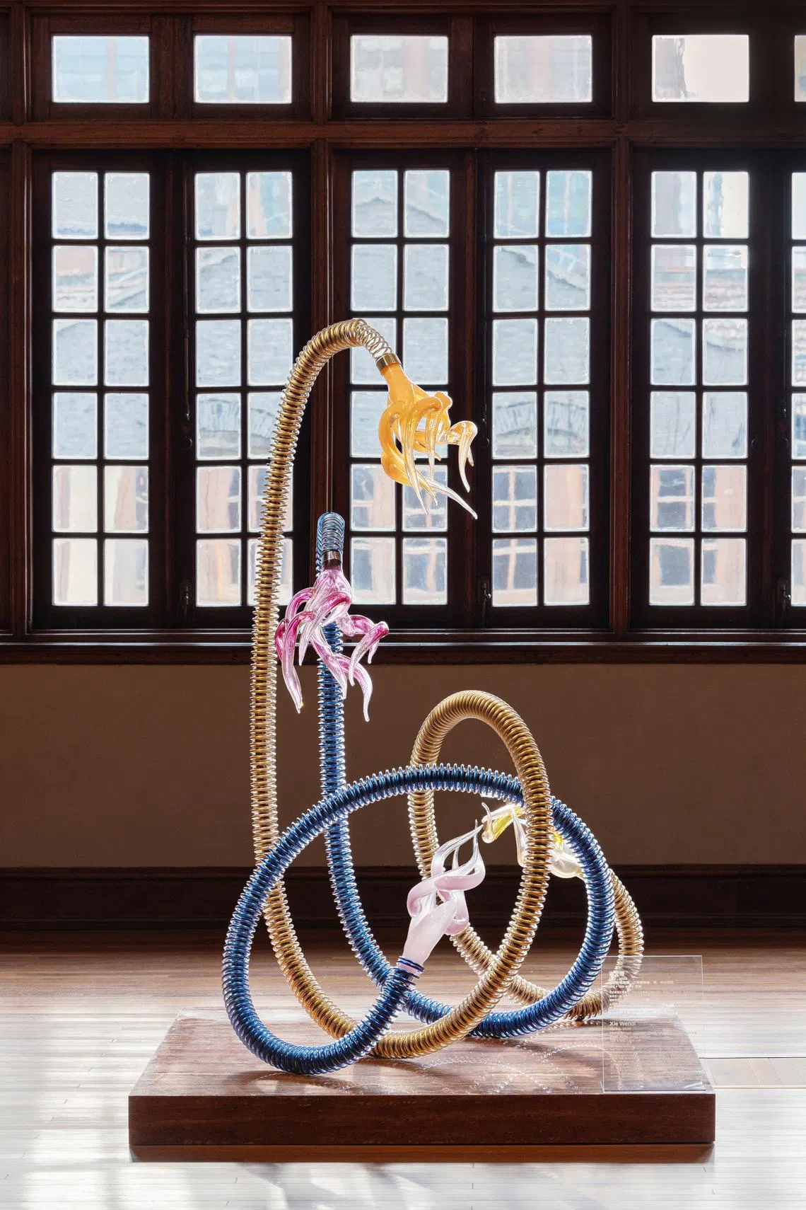 Meanwhile, Chinese artist Xie Wendi’s Spring reveals the snake as a symbol of rebirth and transformation through pastel-coloured, hand-blown glass that coils around like springs before “blooming” into flowers.