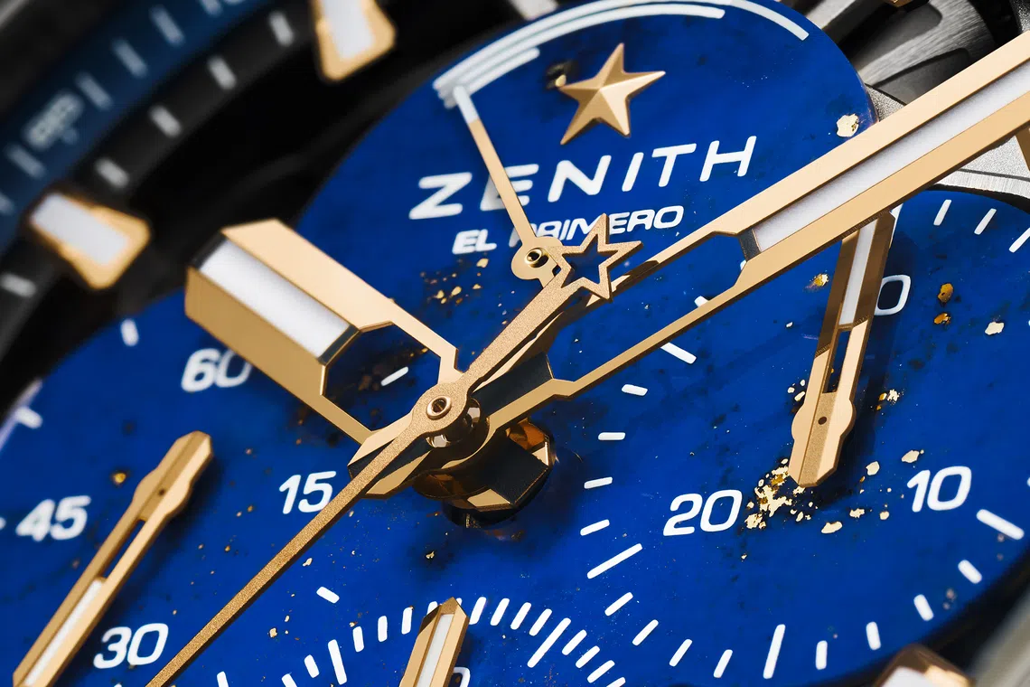 However, Zenith’s decision to use the stone is more than aesthetic. The manufacture has long associated its signature blue with precision and the relentless pursuit of excellence. Lapis lazuli renders that philosophy into tangible form. Unlike synthetic dials or lacquered finishes, each slice of the natural gemstone brings its own unique traits. Pyrite inclusions, which are gold-flecked mineral specks scattered across the surface, occur in captivating patterns determined entirely by nature, ensuring every dial is one-of-a-kind.