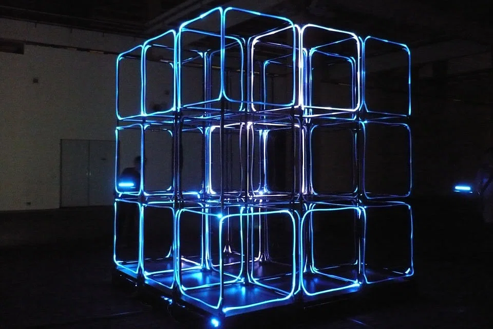 The larger works include Jason Wee's Master Plan which is made up of huge, black, geometric woodblocks pressed against each other to evoke an anonymous urban dystopia; Ho Tzu Nyen's sly Bohemian Rhapsody video of a trial filmed in the former Supreme Court and whose dialogue comprises the full lyrics of Queen's Bohemian Rhapsody, and Lee Wen's ever-popular circular ping-pong table that reconfigures the rules of the game.