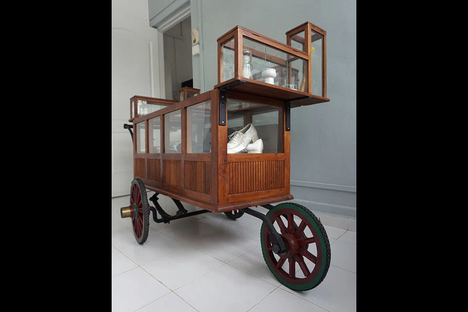 Filled with memorabilia such as the tiny shoes once worn by upper class Chinese women that he bought while working as a tour guide in Malaysia in the 1990s or the hat that he was made to wear to a Culture Club concert in his teens, the timber cabinet on wheels is actually a street vendor's trolley he picked up on a trip to Thailand. That he was not put off by the logistics of shipping something as cumbersome as a trolley can probably be explained by the fact that Mr Lima is a bit of an expert when it comes to moving. "I have lived in 10 different countries. Singapore is the 11th," he reveals, adding: "You just need a good shipping company."