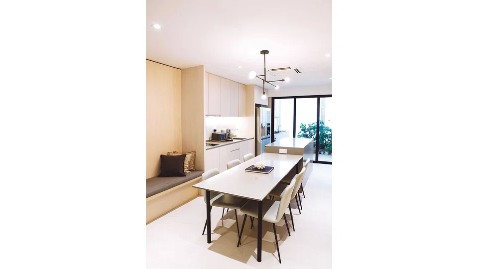 He extends that same restrained approach and eye for detail to his own home, a two-and-a-half storey terrace house in Upper Thomson. He bought it over a year ago, describing it as "one of those homes that you would look at once and never want to see it again". It was a functional space, but with pillars in odd places. As with most terrace houses, the interiors were dark, but he was attracted to its size, layout and location.