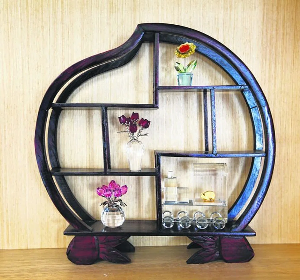 Running the length of the ledge is the bookshelf, which Mrs Chia requested. Besides books, the bespoke 12m long bookshelf also doubles as a display space for Mrs Chia's collection of personal items, such as her wealth bowl, a glass vase from Japan which was given by a friend, and a few miniature Swarovski crystal floral sculptures. "I bought the Swarovski crystals about five years ago, but had no space to display them in our old home. I am so glad that now I can show them off," says Mrs Chia.