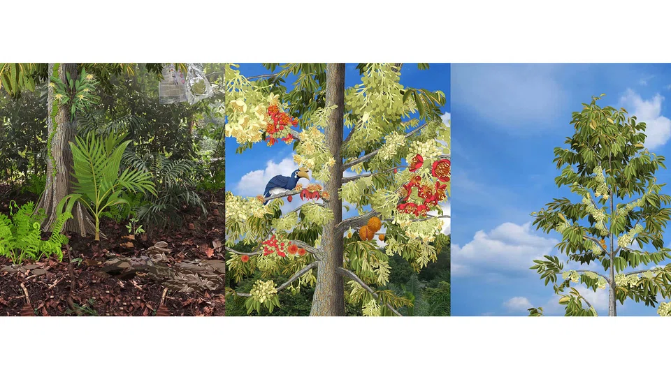 Homegrown landscape architecture firm Salad Dressing worked on the landscape design choosing plants that can be found in tropical rainforest, freshwater forest streams and mangrove habitats that are central to Singapore's natural environment.