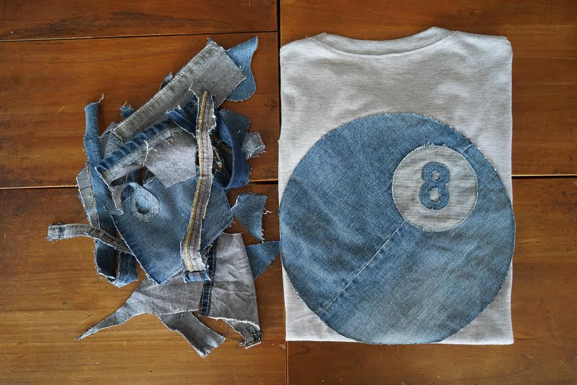 Another project, Restyled Retro, combats fast-fashion waste by reusing pre-loved denim. The discarded denim is sourced from thrift stores and cut and sewn onto plain T-shirts.