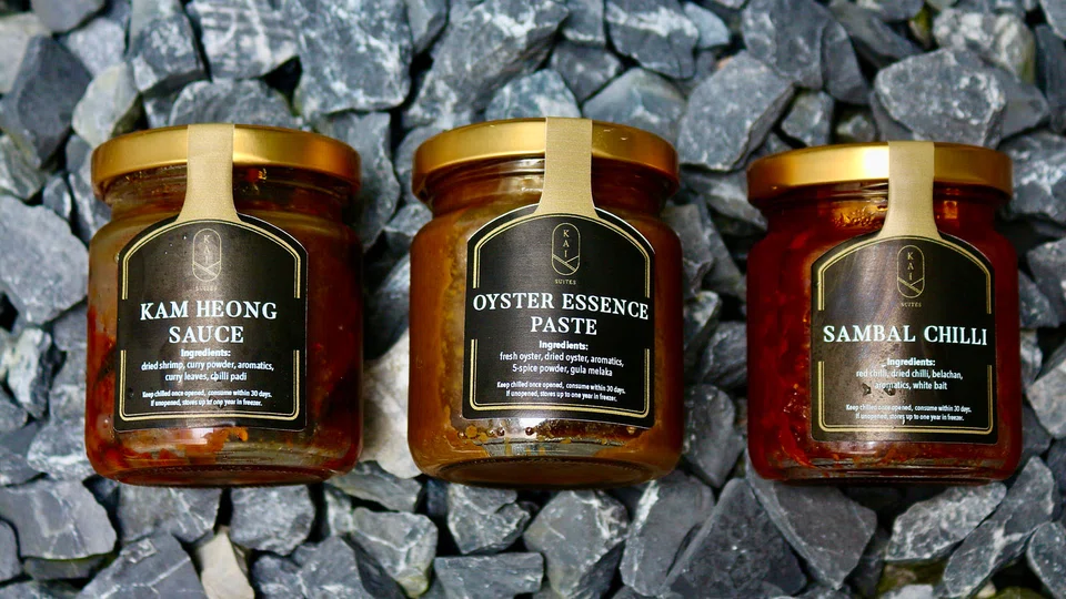 Forget commercial oyster sauce when his Oyster Essence Paste (S$28) is made from cooking down fresh oysters into a thick, umami-rich condiment. Then there's Kam Heong Sauce (S$18) literally translated from Cantonese into "very fragrant" - it's a dried shrimp-based sauce with curry powder and aromatics that's an all-purpose base for stir-fries or just about anything. And for a spicy kick with everything, the Sambal Chilli sauce (S$18) is an amped-up sambal belacan dip.