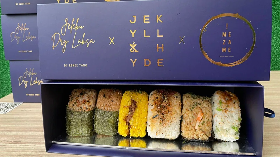 Two hands, four hands, no it took six hands or rather, Sexhands, to produce a set of Japanese-inspired onigiri with very Singaporean fillings. It's a collaboration among three local F&B operators - Jekyll & Hyde, Mezame! and the home-based Jelebu Dry Laksa - in a show of camaraderie during these difficult times, to create a takeaway set specially for National Day.