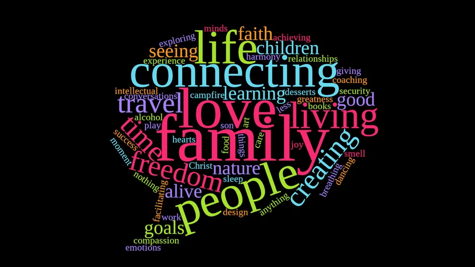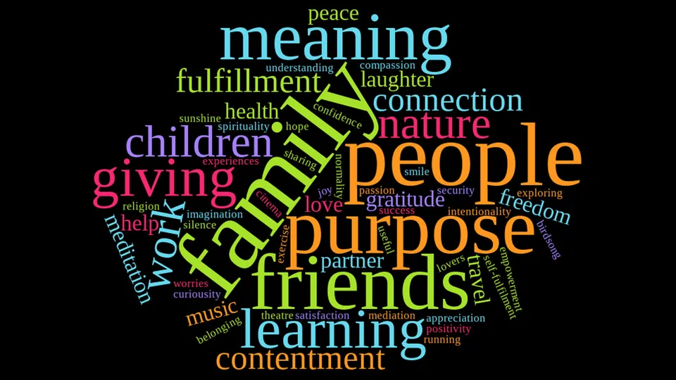 In 2020, most of these words have all but vanished from the word cloud. Instead, new words such as "Meaning", "Purpose", "Gratitude", "Contentment", "Peace", "Fulfillment", "Meditation" and "Helping" have emerged in the cloud.