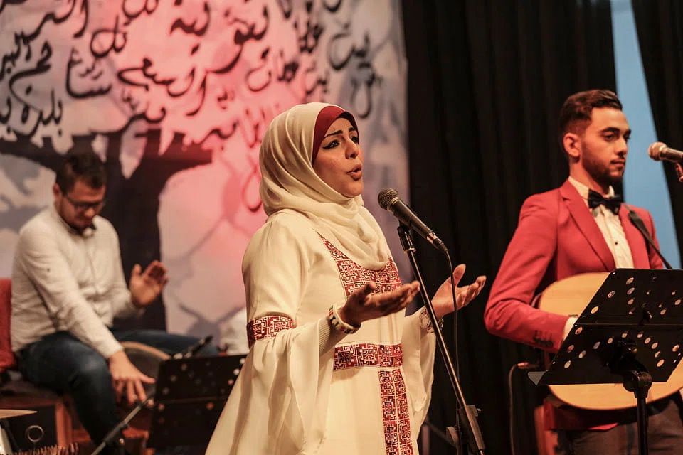 "Palestine is for its people," she crooned. "And the houses they destroyed," referring to decades of conflict with Israel, "will be rebuilt by the intifada."