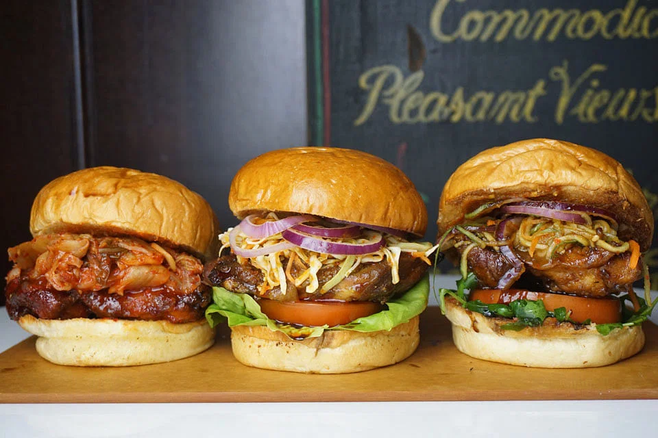 An example is their buah keluak wantons (S$18++), which are stuffed with the black nut, finely-diced prawns, spring onions, garlic, ginger, and served with a sambal chilli dip. Another is the Indonesian-inspired ayam bakar burger (S$15++), or a fried chicken kimchi burger (S$13++).