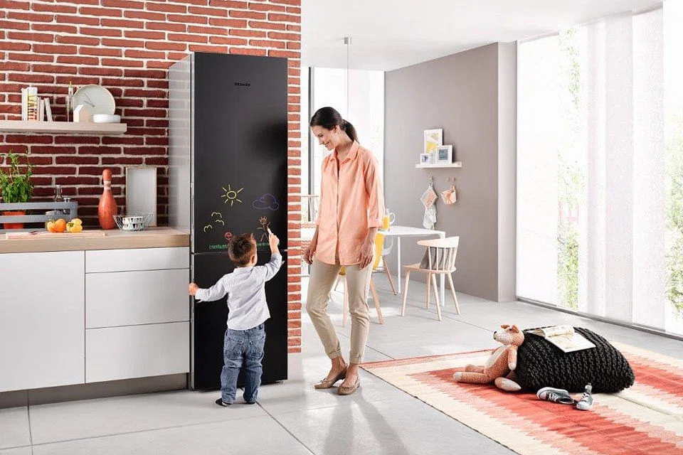 There's also the aforementioned temperature-controlled induction stove where you can leave your egg frying as you answer the phone or deal with the delivery man without coming back to a charred mess. And try to resist the blackboard covered fridge - a whimsical nod to school and fridge magnets. The entire front of the fridge is covered in blackboard material complete with a white 'chalk' pen that you can use to write reminders or shopping lists then and there.